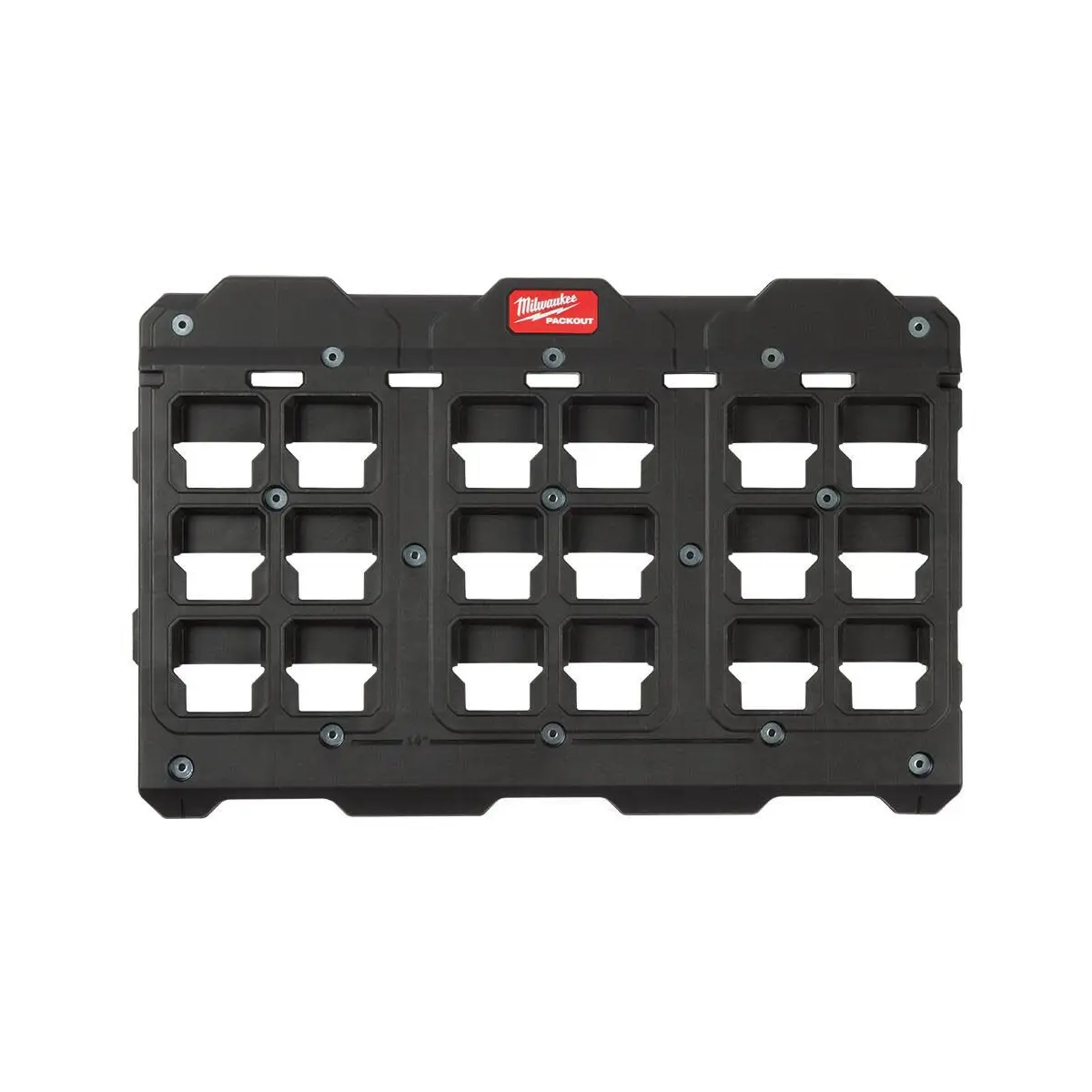 Montážna doska MILWAUKEE PACKOUT XL je konštruovaná z nárazuvzdorných polymérov, čo vám dáva nosnosť až 35 kg pri montáži vo vozidle a 70 kg pri montáži na stenu