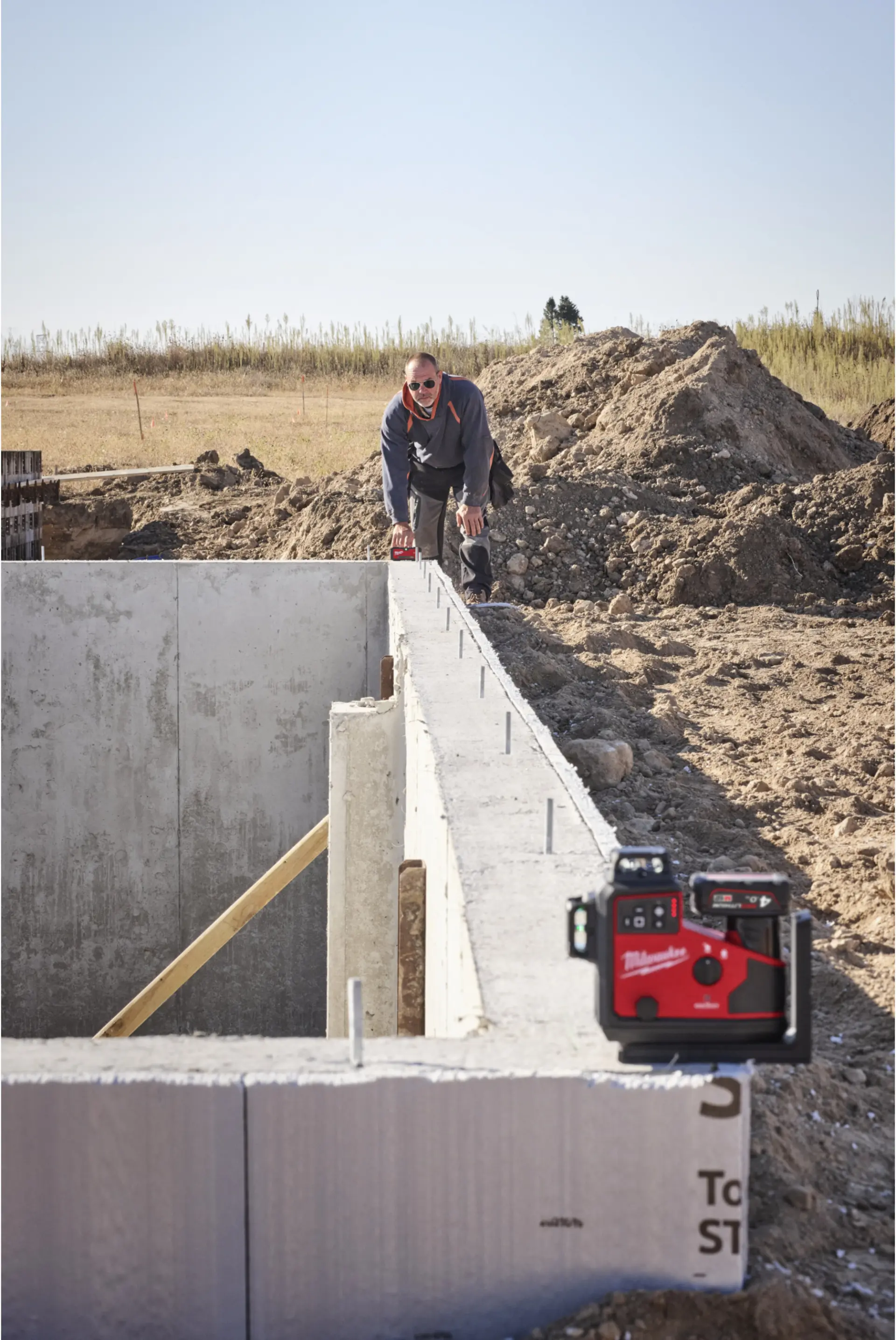 • M12™ zelený laser 360° 3 roviny poskytuje funkci vše v jednom s jednou vodorovnou a dvěma svislými liniemi pro rychlé a snadné vyrovnání, nivelaci, vyrovnání do čtverce a přenosy, což vám umožní snadno rozvrhnout velké prostory pomocí jediného nářadí