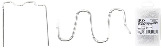 Balení obsahuje 100 kusů, což umožňuje provádět více oprav bez nutnosti častého dokupování. Sponky jsou baleny tak, aby byly snadno dostupné a přehledně uspořádané pro rychlou práci.