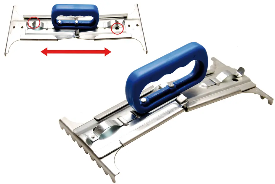 Rukojeť na nošení dlaždic je určena pro snadnou manipulaci s dlaždicemi o šířce 300 až 500 mm. Díky nastavitelnému rozpětí je vhodná pro různé typy a velikosti dlaždic, což ocení každý, kdo pracuje s obklady nebo dlažbou. Konstrukce je navržena tak, aby umožnila pevné uchopení a minimalizovala riziko sklouznutí během přenášení.