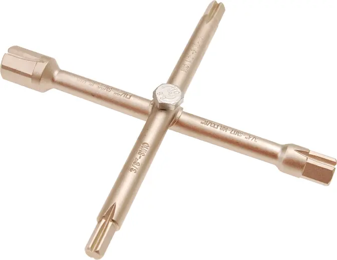 Sanitární křížový klíč je praktický nástroj určený pro práci s různými typy armatur a uzávěrů v oblasti instalatérství. Jeho konstrukce umožňuje použití na více velikostí ventilů a šroubů, což z něj činí univerzální pomůcku pro každého, kdo se pohybuje v oblasti údržby vodovodních systémů.