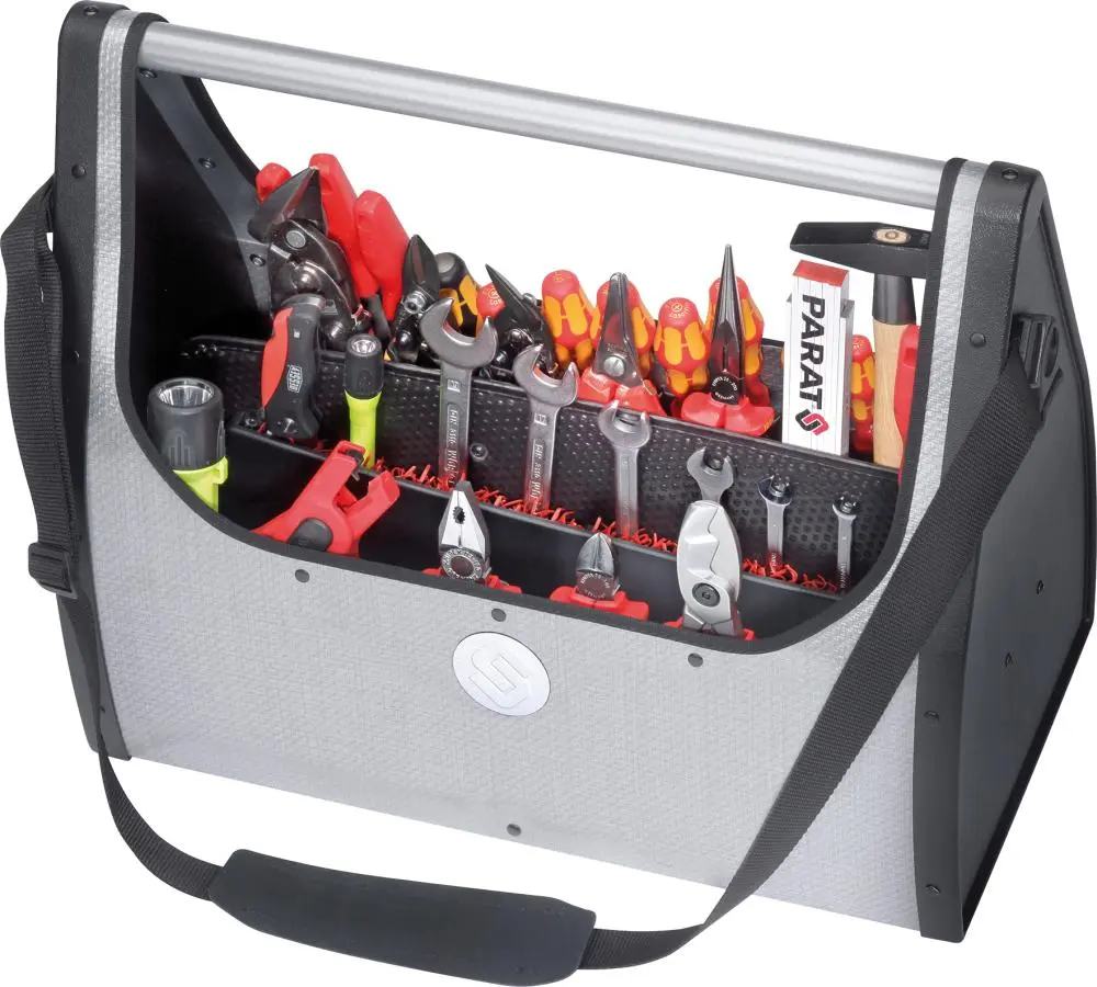 Brašna na nářadí PARACURV 495x250x395 mm PARAT (EDE73850015) je vhodná pro každého, kdo hledá spolehlivé řešení pro organizaci a transport nářadí. Její konstrukce a promyšlené vnitřní uspořádání umožňují efektivní práci v dílně, na stavbě i v terénu.