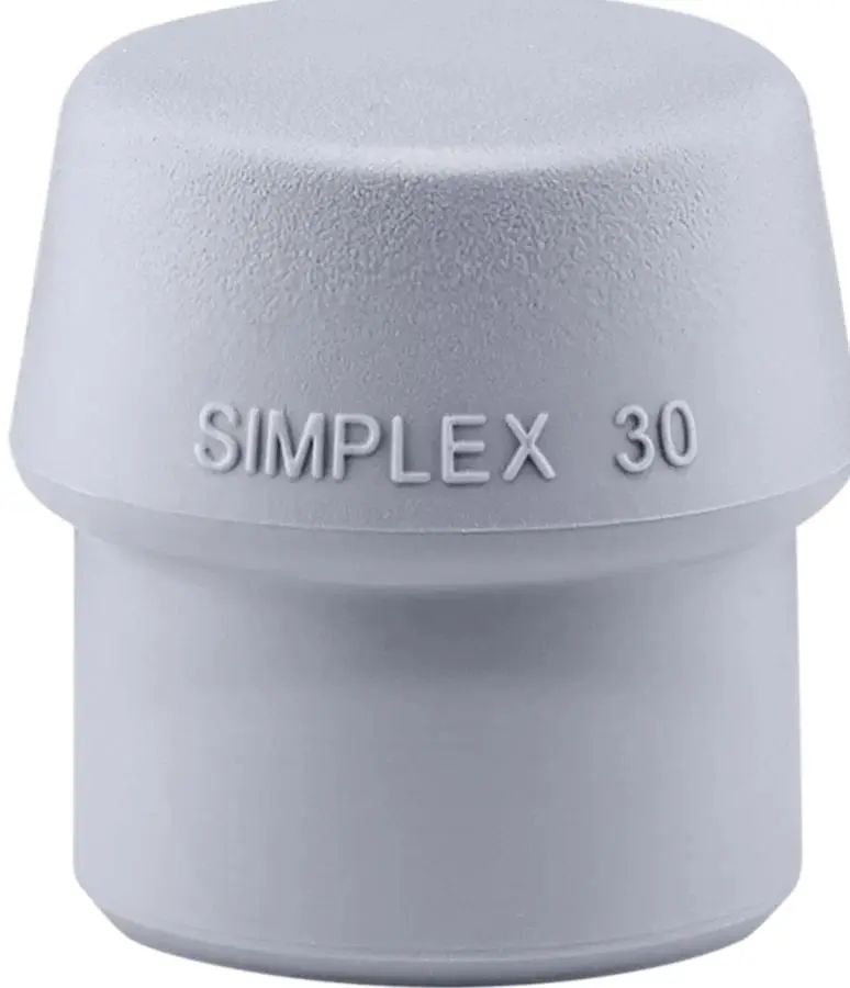 Hlava kladiva SIMPLEX 30 mm TPE-mid je určená pre používateľov, ktorí potrebujú vykonávať údery bez poškodenia povrchu materiálu. Tento náhradný diel je kompatibilný s kladivami SIMPLEX a je vybavený mäkkou plochou z termoplastického elastoméru (TPE-mid), ktorá tlmí nárazy a znižuje riziko vzniku otlakov na pracovnom povrchu.