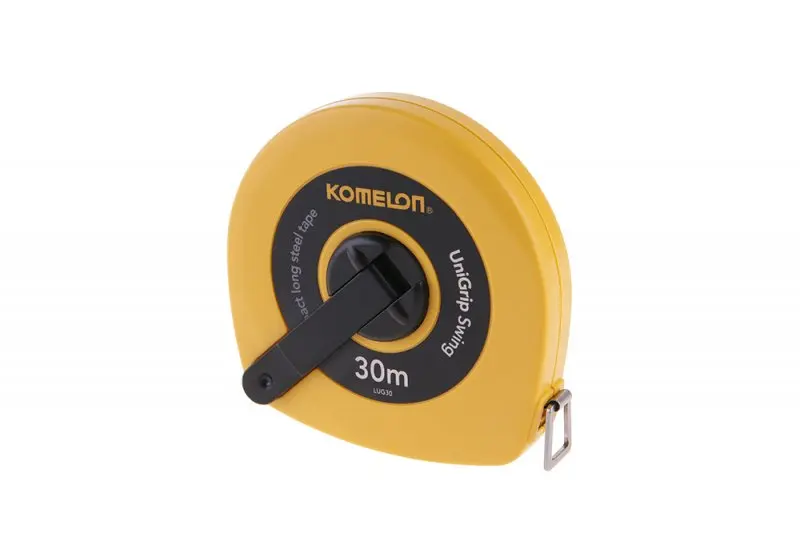 Oceľové meracie pásmo KMC 913 od spoločnosti Komelon ponúka dĺžku 30 metrov, ktorá umožňuje pohodlné meranie aj na väčších stavbách, vonku alebo v dielni. Vďaka robustnej oceľovej konštrukcii je merací pás odolný voči opotrebovaniu a vydrží aj tie najnáročnejšie podmienky na stavenisku.