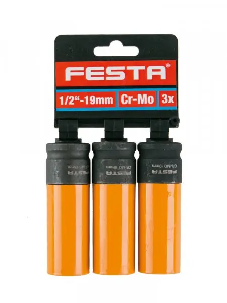Súprava troch 1/2" nástrčných hlavíc na kolesá s rozmerom 19 mm je určená na prácu s račňou a uľahčuje uvoľňovanie a uťahovanie skrutiek kolies. Robustná konštrukcia zaručuje dlhú životnosť pri častom používaní v dielni a garáži.