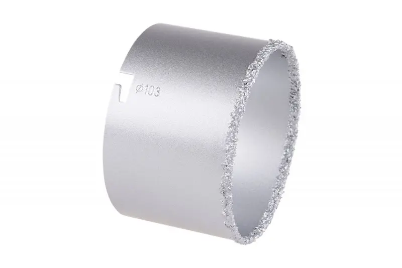 Odhrotovacia korunka s priemerom 103 mm je určená na vŕtanie presných otvorov do stavebných materiálov, ako sú sadrokartón, drevo, plast alebo mäkké murivo. Vďaka svojej veľkosti je vhodná na inštaláciu elektrických skriniek, potrubí alebo iných prvkov, kde je potrebný väčší otvor.
