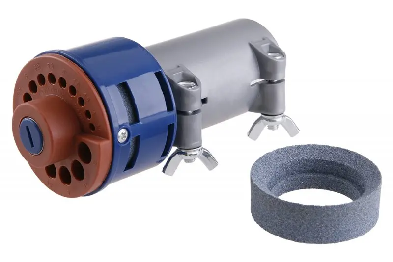 Ostrič je vybavený brúsnym kotúčom, ktorý je optimalizovaný na odstraňovanie materiálu z tvrdých aj rýchlorezných ocelí. Tým sa dosiahne rovnomerné naostrenie a zachová sa správny uhol ostria, čo je rozhodujúce pre ďalšie používanie vrtáka.