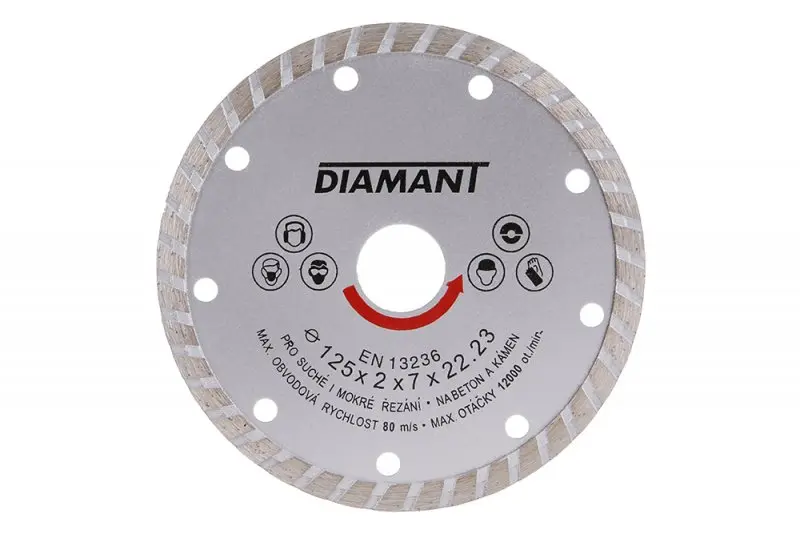 Turbo segmenty na obvode kotúča zvyšujú účinnosť rezania a umožňujú odstraňovanie prachu a zvyškov materiálu. To je obzvlášť užitočné pri dlhšej práci, keď potrebujete udržať pracovnú plochu čistú a prehľadnú.