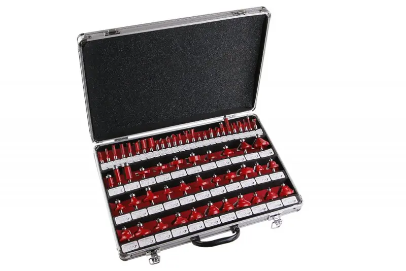Táto súprava obsahuje 59 rôznych tvarových fréz na obrábanie dreva. Každý kus má upínací priemer 8 mm, čo umožňuje použitie s bežnými typmi horných fréz. Vďaka širokej škále tvarov a profilov je možné vykonávať rôzne typy frézovania, od jednoduchých drážok až po zložitejšie ozdobné prvky.
