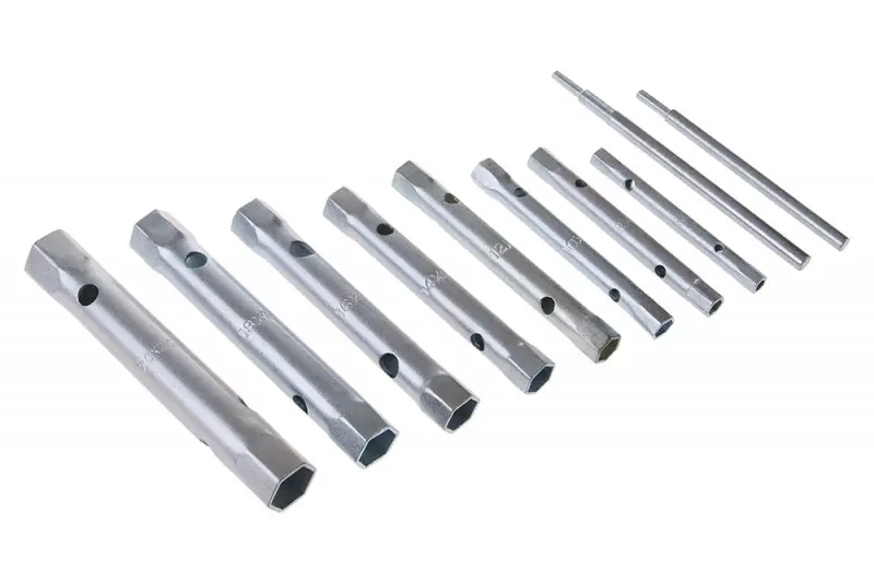 Sada obsahuje 10 rúrkových kľúčov s veľkosťou 6-22 mm, ktoré sú vhodné na prácu s maticami a skrutkami na ťažko prístupných miestach. Praktické balenie uľahčuje prenášanie a skladovanie.