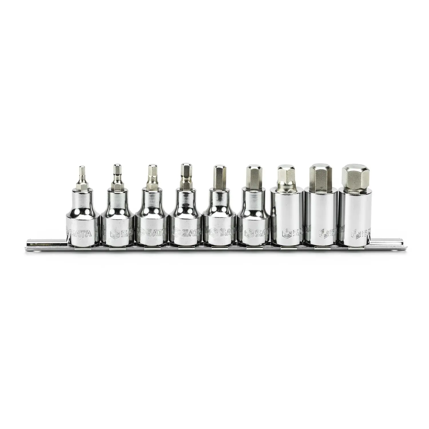 Tato sada obsahuje 9 nástrčných hlavic s vnitřním šestihranem, které jsou určeny pro práci s různými typy šroubů a matic. Hlavice jsou vyrobeny z pevného materiálu, který zajišťuje dlouhou životnost a odolnost při každodenním používání v dílně i domácnosti.