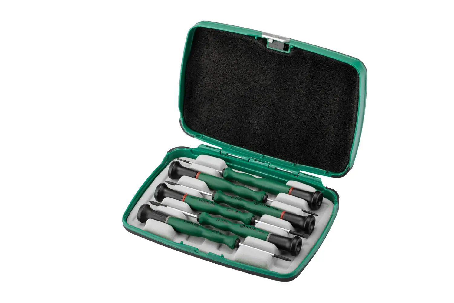 Sada obsahuje 6 přesných kombinovaných šroubováků s různými typy hrotů, které usnadní práci při montáži i opravách drobné elektroniky a jemné mechaniky. Ergonomické rukojeti zajišťují pevný úchop a pohodlné ovládání při detailní práci.