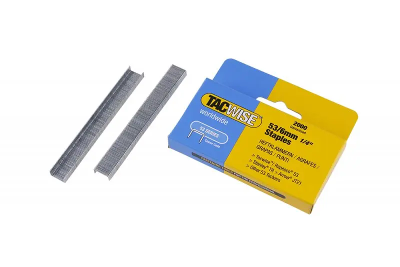 Sponky 53/6 sú určené na efektívne zošívanie papiera, textilu, fólií alebo tenkých drevených materiálov. Vďaka univerzálnym rozmerom 53/6 mm ich možno použiť v širokom spektre ručných a elektrických zošívačiek, ktoré podporujú tento typ sponiek.