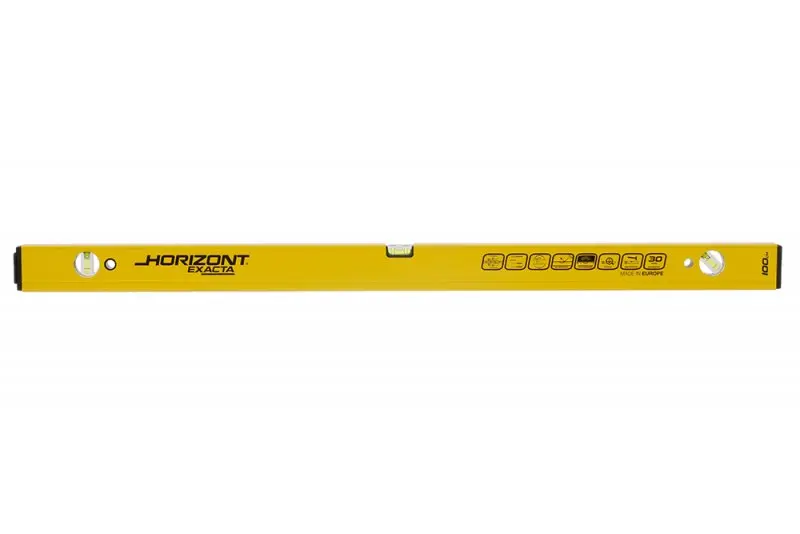 Vodováha HORIZONT EXACTA je vhodná pre profesionálov a domácich majstrov, ktorí potrebujú spoľahlivý nástroj na meranie rovinnosti. Vďaka trom vodováham je možné