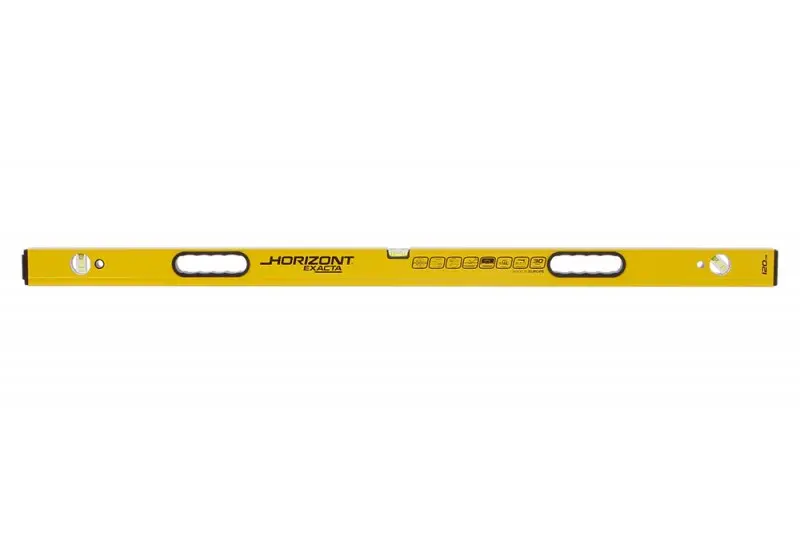 Vodováha HORIZONT EXACTA je vhodná pre profesionálov a domácich majstrov, ktorí potrebujú presný a spoľahlivý merací nástroj. Vďaka trom vodováham možno vykonávať viacero typov meraní bez