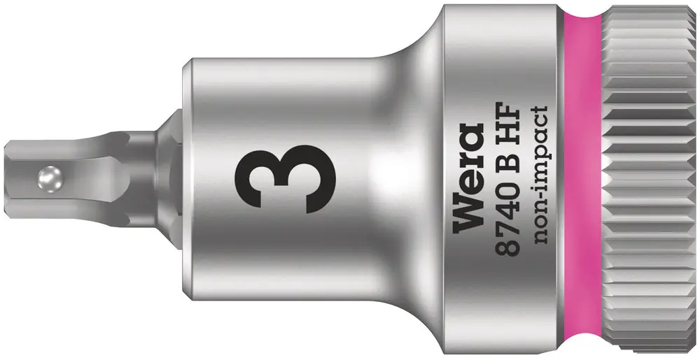 • Hlavice s bity s připojovacím rozměrem 3/8" a přidržovací funkcí pro zvlášť komfortní šroubování s omezeným nebezpečím ztráty šroubu při přivádění k utahovanému dílu. S identifikátorem nářadí Take it easy s barevným označením podle velikostí - pro snadné a rychlé nalezení požadovaného nářadí.