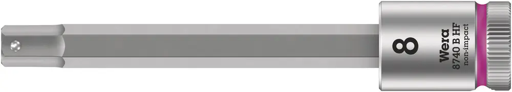 • Hlavice s bity s připojovacím rozměrem 3/8" a přidržovací funkcí pro zvlášť komfortní šroubování s omezeným nebezpečím ztráty šroubu při přivádění k utahovanému dílu. S identifikátorem nářadí Take it easy s barevným označením podle velikostí - pro snadné a rychlé nalezení požadovaného nářadí.