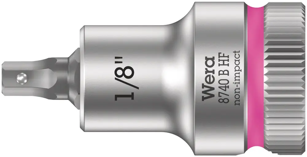 • Hlavice s bity s připojovacím rozměrem 3/8" a přidržovací funkcí pro zvlášť komfortní šroubování s omezeným nebezpečím ztráty šroubu při přivádění k utahovanému dílu. S identifikátorem nářadí Take it easy s barevným označením podle velikostí - pro snadné a rychlé nalezení požadovaného nářadí.