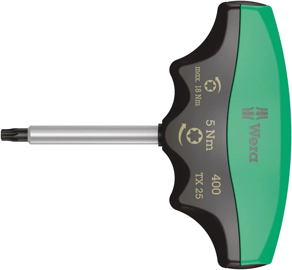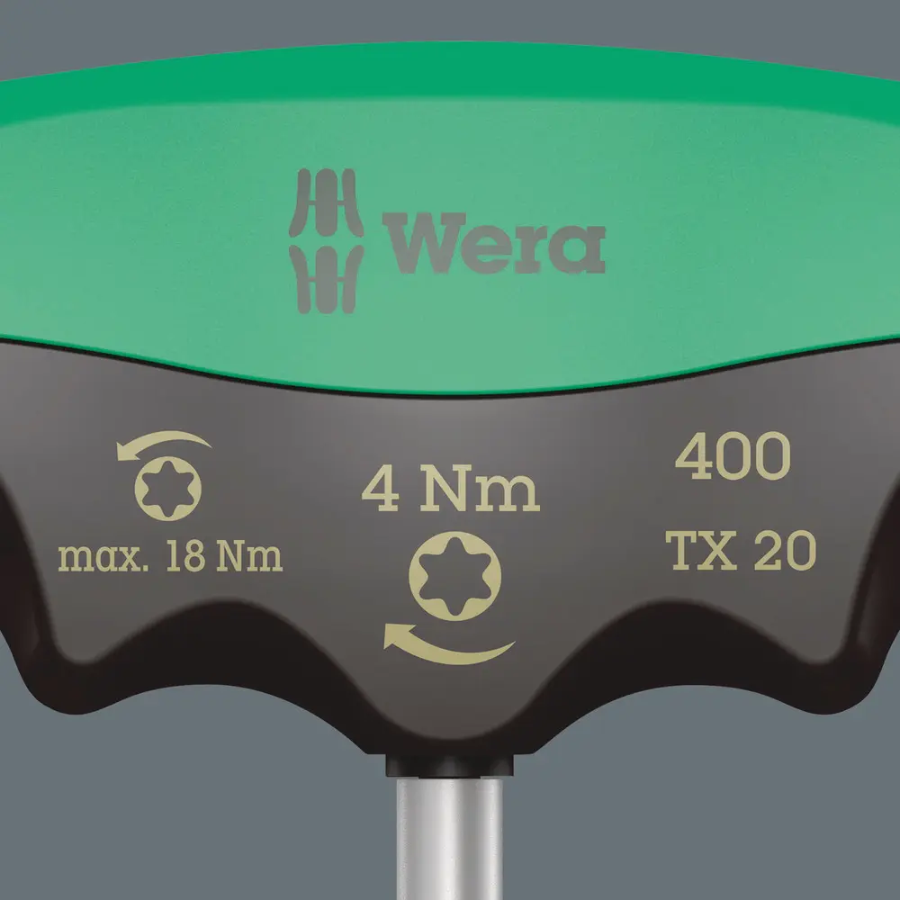 Wera indikátor utahovacího momentu s pevným utahovacím momentem pro TORX® šrouby. Chráněn proti manipulaci. Robustní kluzná spojka vytváří dobře slyšitelný a citelný signál vypnutí při dosažení nastaveného utahovacího momentu a přetažení utahovacího momentu je tak nemožné. Několikrát vyšší povolovací moment než nastavený utahovací moment, díky tomu není většinou zapotřebí již žádné další nářadí pro povolení šroubových spojení. Tvar rukojeti vyplní dobře celou ruku a prsty jsou položeny v měkce zaoblených prohlubních. Díky tomu je zaručen optimální, ergonomický přenos síly.