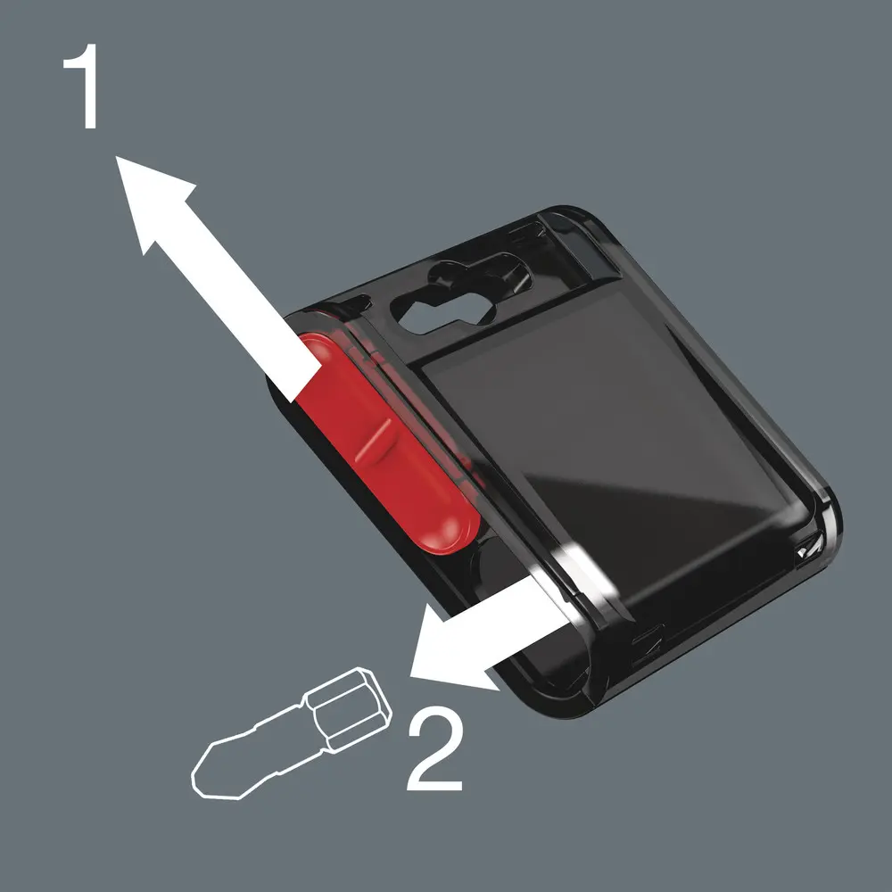 Bity, držáky, adaptéry a sortiment Posuvné víko umožňuje snadné a odměřené vyjmutí bitů a vrácení zpět do krabičky. Rychlý přehled o počtu obsažených bitů díky transparentní zadní straně.