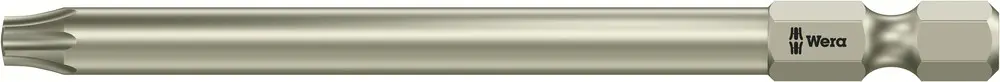 • Kvalitní bity z nerezové oceli na šrouby s vnitřním profilem TORX®. Nerezové nářadí Wera se vyrábí z nerezové oceli, čímž se zabraňuje přenosu nevzhledné cizí rzi. Šestihran 1/4", vhodný pro držáky podle DIN ISO 1173-F 6,3.