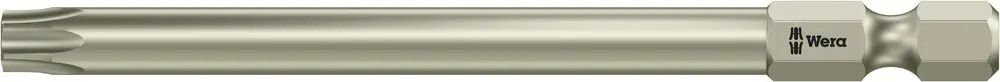 Kvalitní bity z nerezové oceli na šrouby s vnitřním profilem TORX®. Nerezové nářadí Wera se vyrábí z nerezové oceli, čímž se zabraňuje přenosu nevzhledné cizí rzi. Šestihran 1/4", vhodný pro držáky podle DIN ISO 1173-F 6,3.
