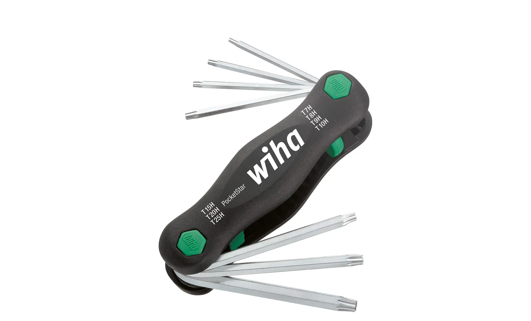 WIHA TR P7 PocketStar je sklápěcí držák vybavený sadou sedmi nástrojů typu TORX® TR, které jsou určeny pro práci s bezpečnostními šrouby. Tento model je navržen tak, aby umožnil rychlou výměnu jednotlivých klíčů a snadné přenášení v kapse nebo brašně. Díky sklápěcímu mechanismu lze nástroje bezpečně uložit do těla držáku, což minimalizuje riziko jejich ztráty.