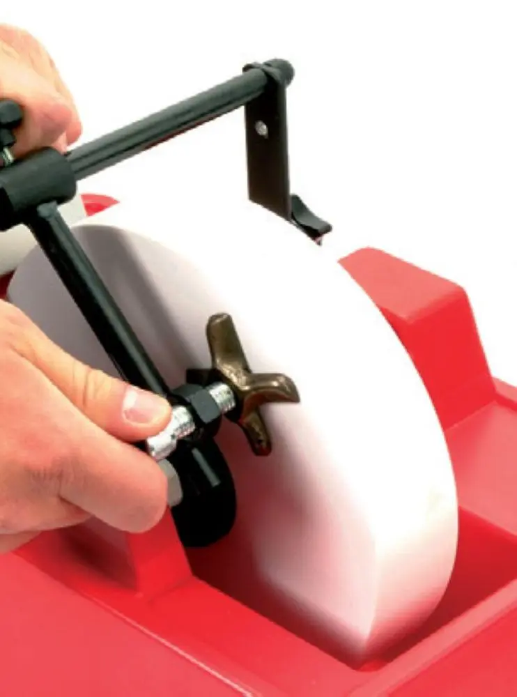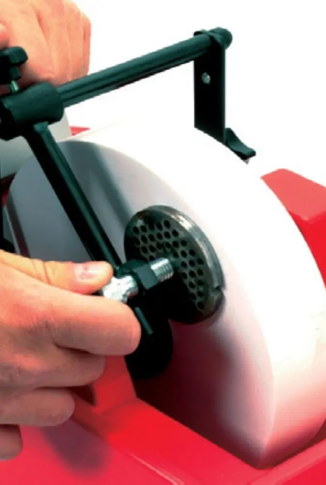 Přípravek Scanslib pro broušení nožů pro mlýnky na maso Jednotka pro snadné broušení nožů a řezných desek s otvory pro strojky na mletí masa Montáž přípravku je přímo na základní držák