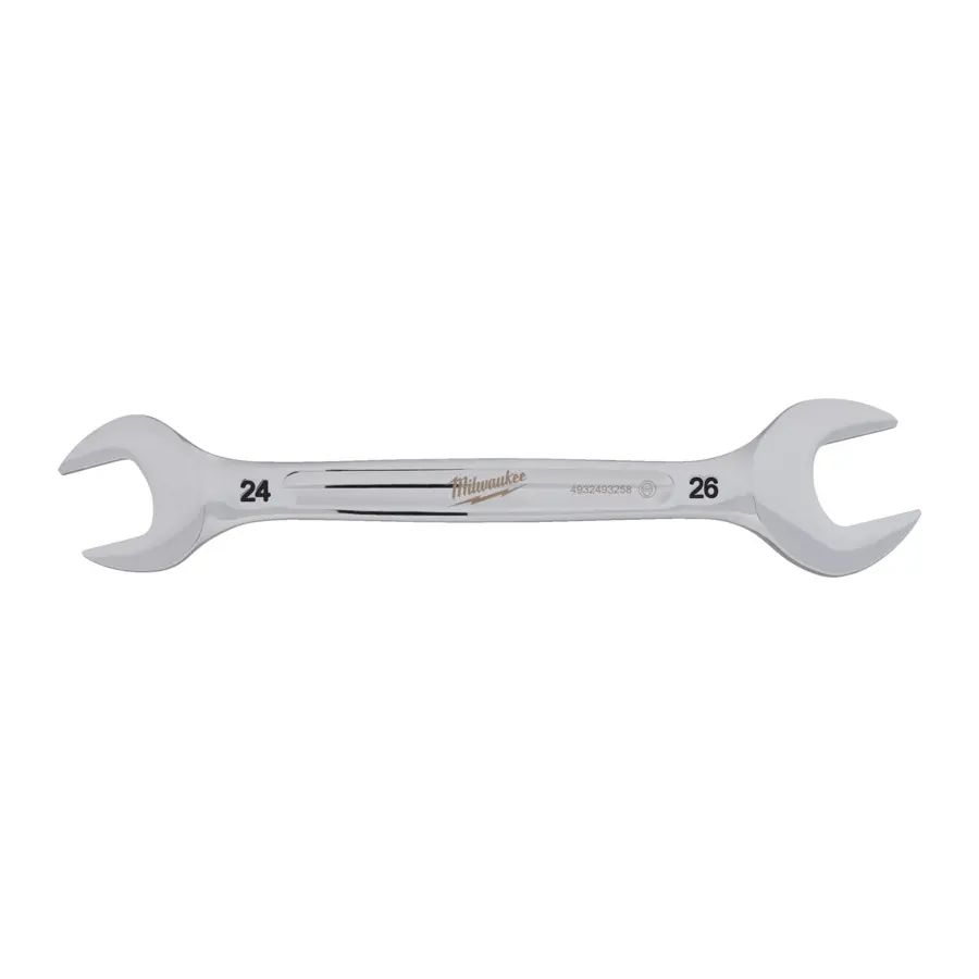 Oboustranný vidlicový klíč Milwaukee 24 x 26 mm je určen pro práci s maticemi a šrouby o rozměrech 24 a 26 mm. Díky dvěma různým velikostem na jednom nástroji šetří místo v kufříku a umožňuje rychlou výměnu mezi rozměry bez nutnosti hledání dalšího klíče.