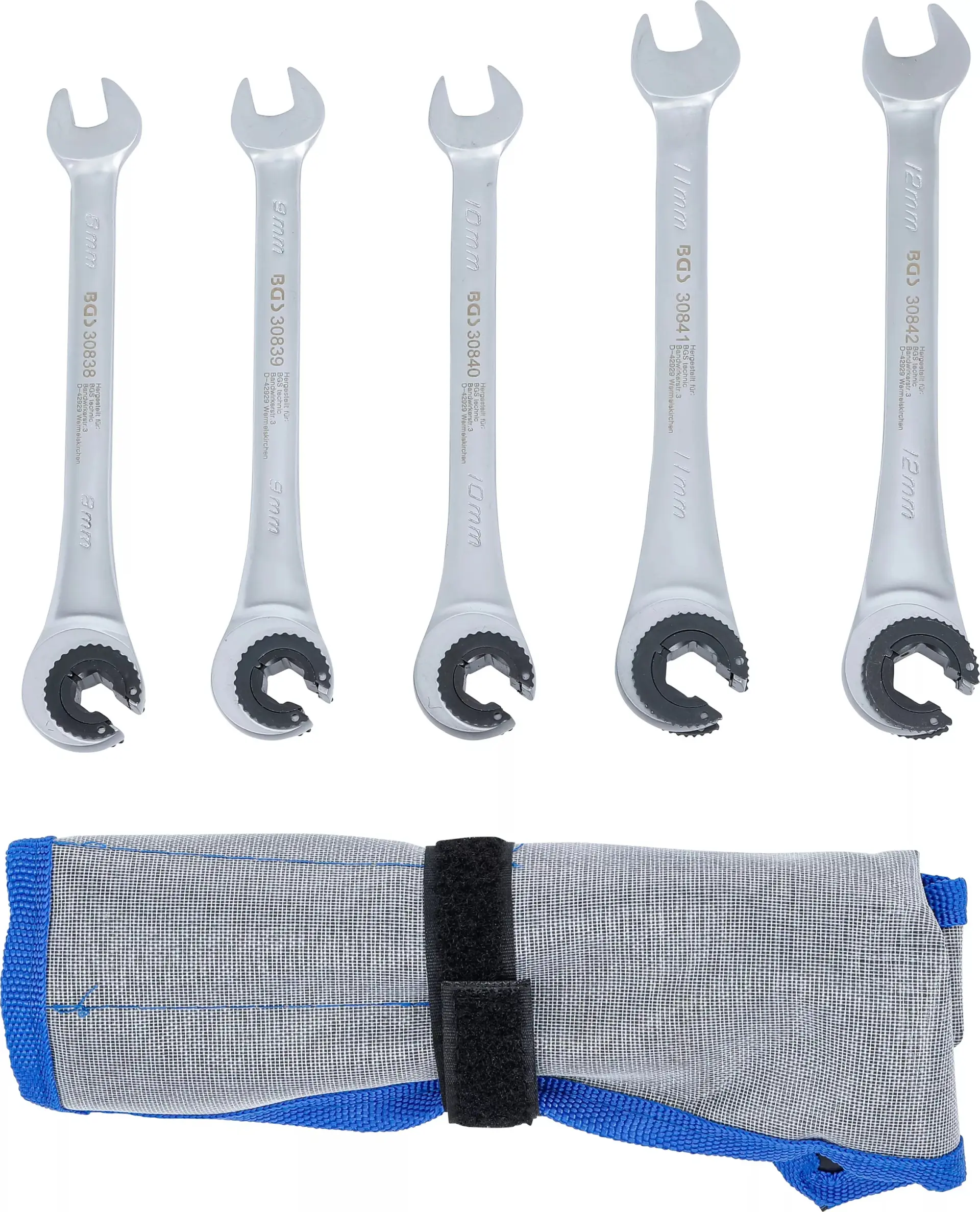Otvorené prstencové kľúče 8 ÷ 12 mm s račňou BGS1030836. Sada 5 dielov v taške (BGS1030836)