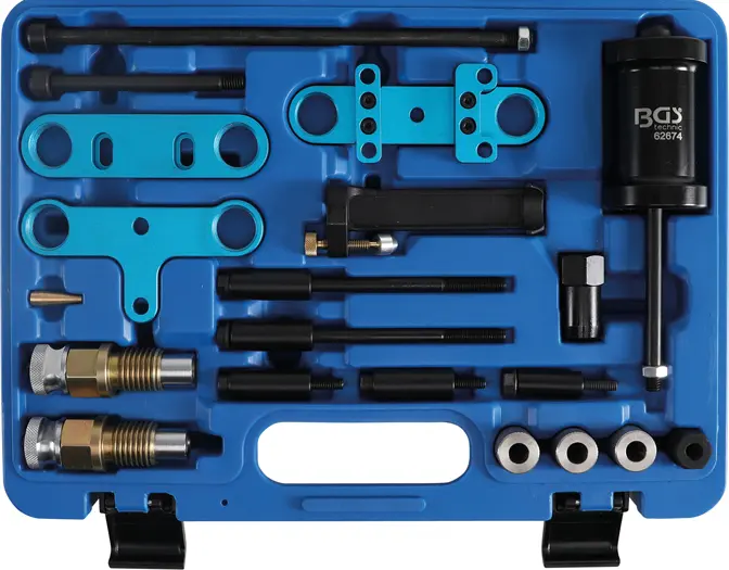 Sada nářadí BGS1062674 je určena pro demontáž a montáž vstřikovacích trysek palivového systému u vozů BMW, obsahuje přesně tvarované nástroje pro konkrétní modely. Robustní konstrukce zajišťuje dlouhou životnost a spolehlivost při práci v dílně i gar