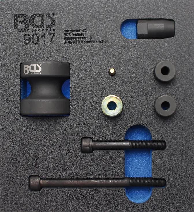 Souprava pro demontáž vstřikovacích trysek BGS109017 je určena pro přímé benzínové vstřikovače BMW, obsahuje speciální nástroje pro efektivní a přesné vyjmutí trysek. Vhodná pro profesionální i domácí použití při údržbě motoru.