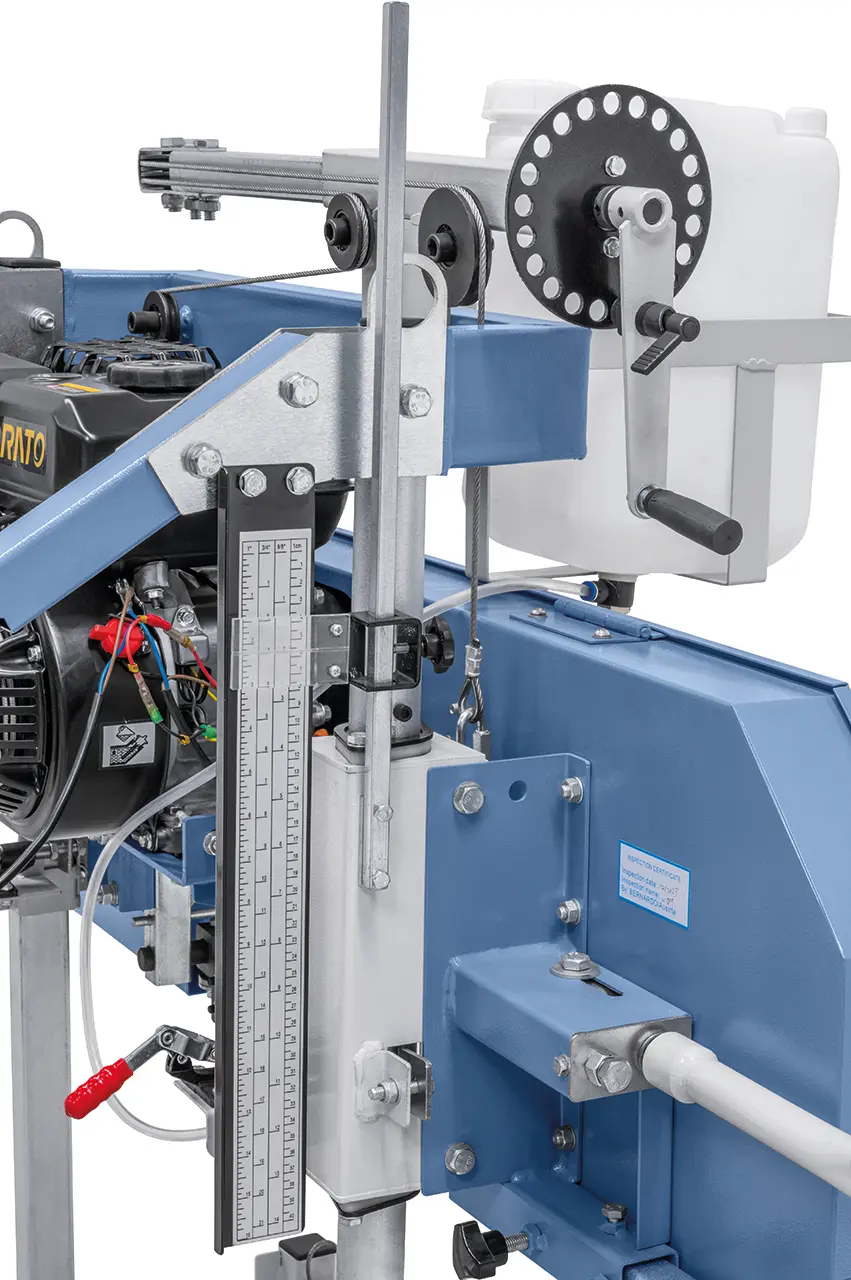 • Nastavenie posuvu a výšky pílového agregátu sa vykonáva ručne