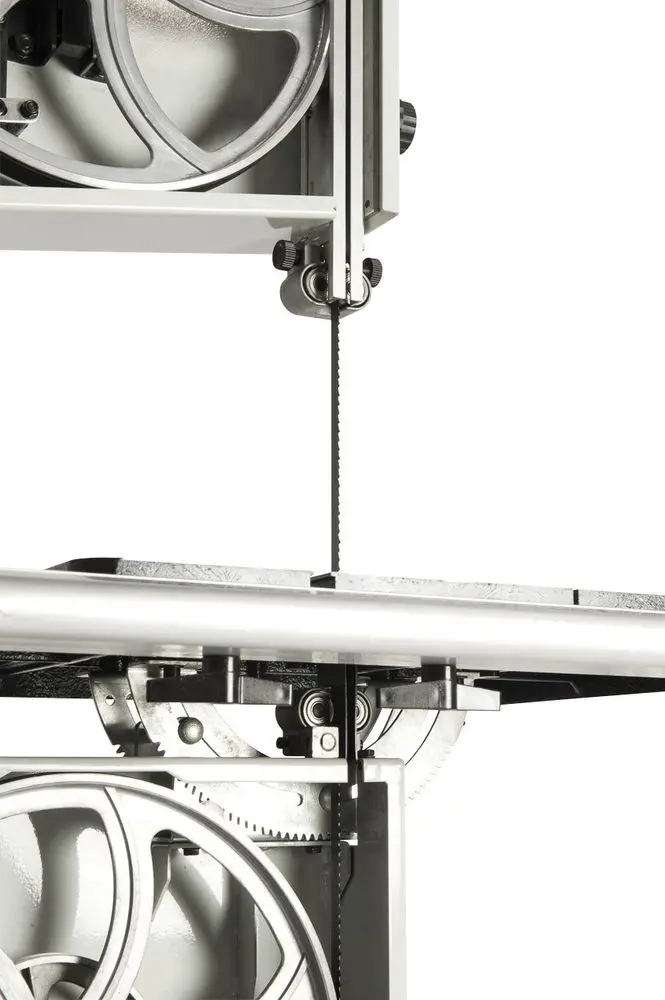 Tuhá a kompaktná pásová píla na drevo pre domácu dielňu s veľkorysou kapacitou rezu.