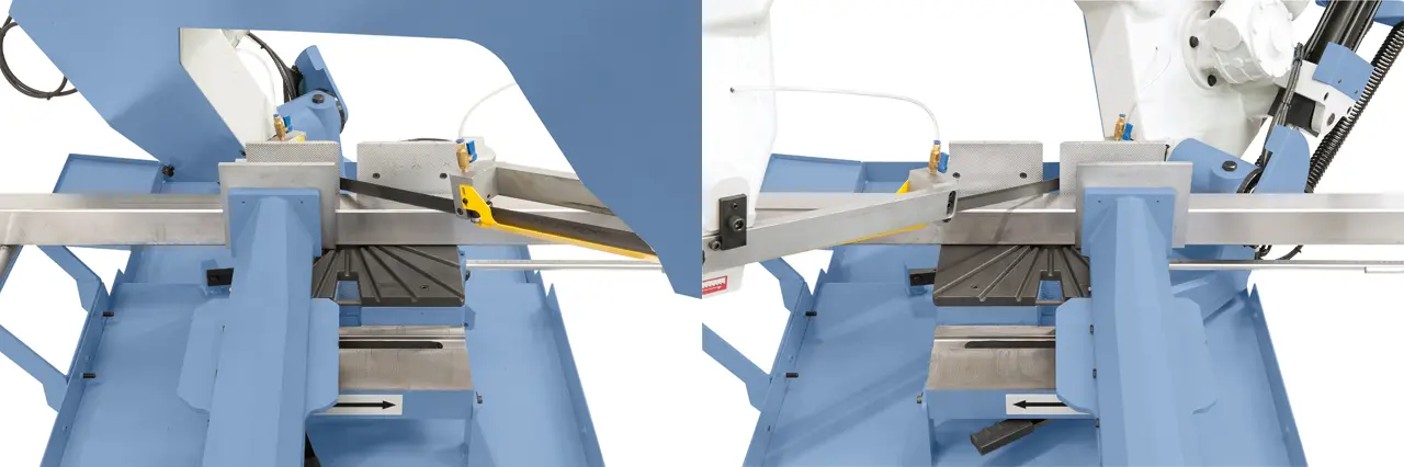 Poloautomatická pásová píla na kov Bernardo - kompaktná profesionálna pásová píla s dvojitým pokosom do 60° na univerzálne použitie v dielňach, zámočníckych dielňach atď. Pásová píla je štandardne vybavená