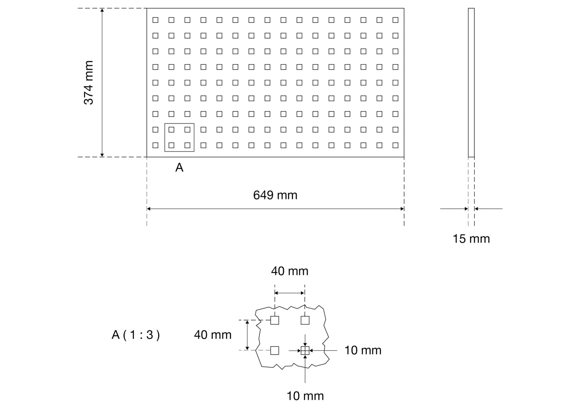 Štandardná verzia perforovanej dosky na náradie, ktorá umožňuje prehľadné zavesenie náradia a kompatibilitu s rôznymi úložnými systémami vďaka univerzálnym otvorom. Robustná konštrukcia zaisťuje dlhú životnosť.