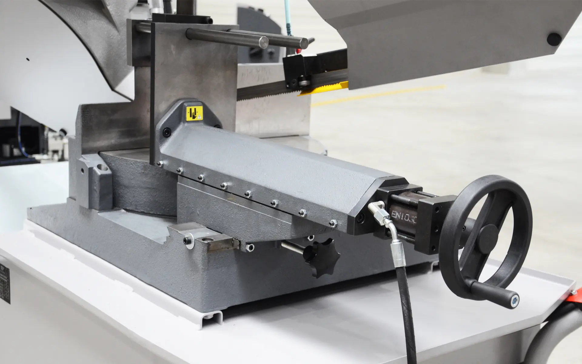 Liatinové prevedenie ramena prispieva (v porovnaní so zvarenou konštrukciou) k lepšiemu pohlcovanie vibrácií pri rezaní. Presné tvrdokovové vedenie pílového pásu, kĺb ramena uložená v predpätých kuželíkových ložiskách a synchrónne bežiaca kefa na odstraňovanie triesok sú predpokladom pre vynikajúci rezný výkon