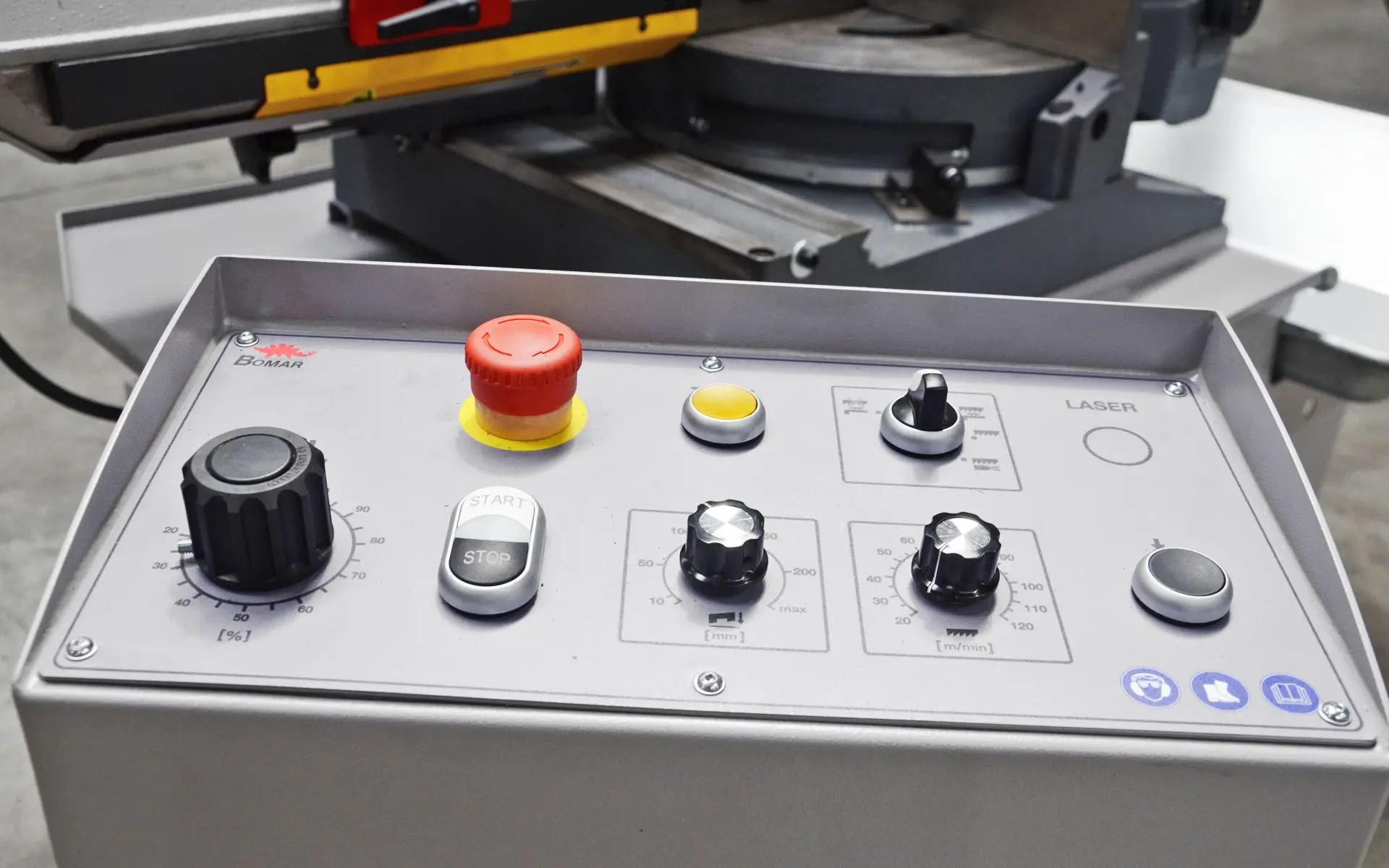 Po dorezaní materiálu sa rameno stroja automaticky vracia do vrchnej nastaviteľnej polohy