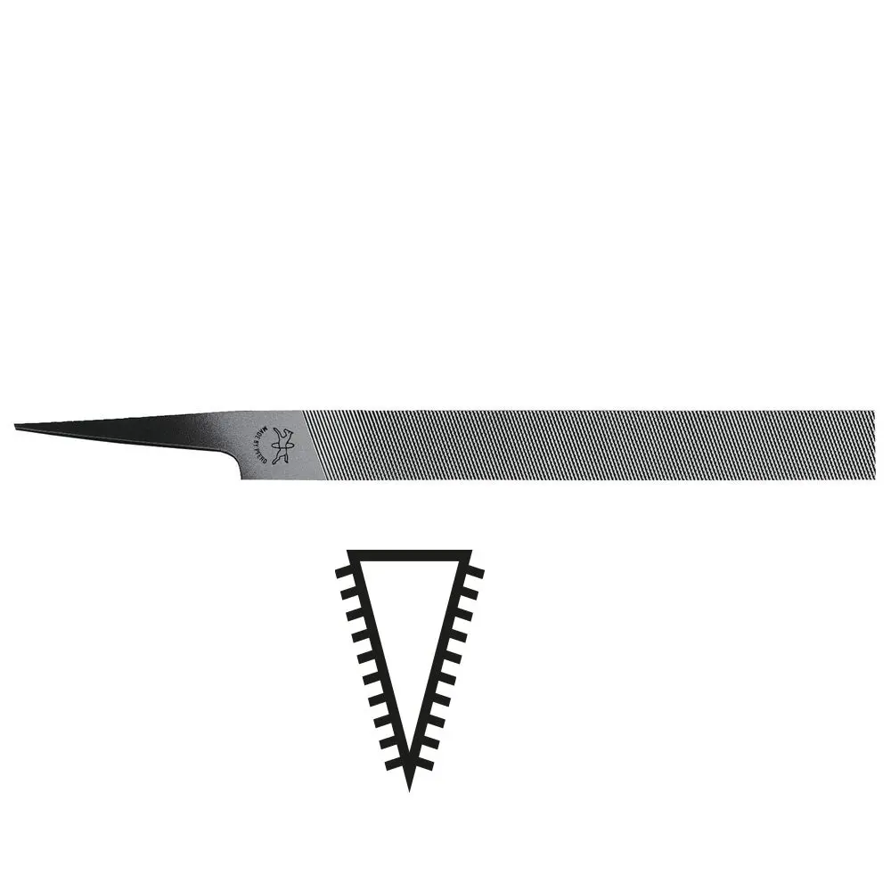 - Pilník s nožovitým profilem, stopkou a sekem na třech stranách (zakulacená hrana a ploché strany) DIN 7261