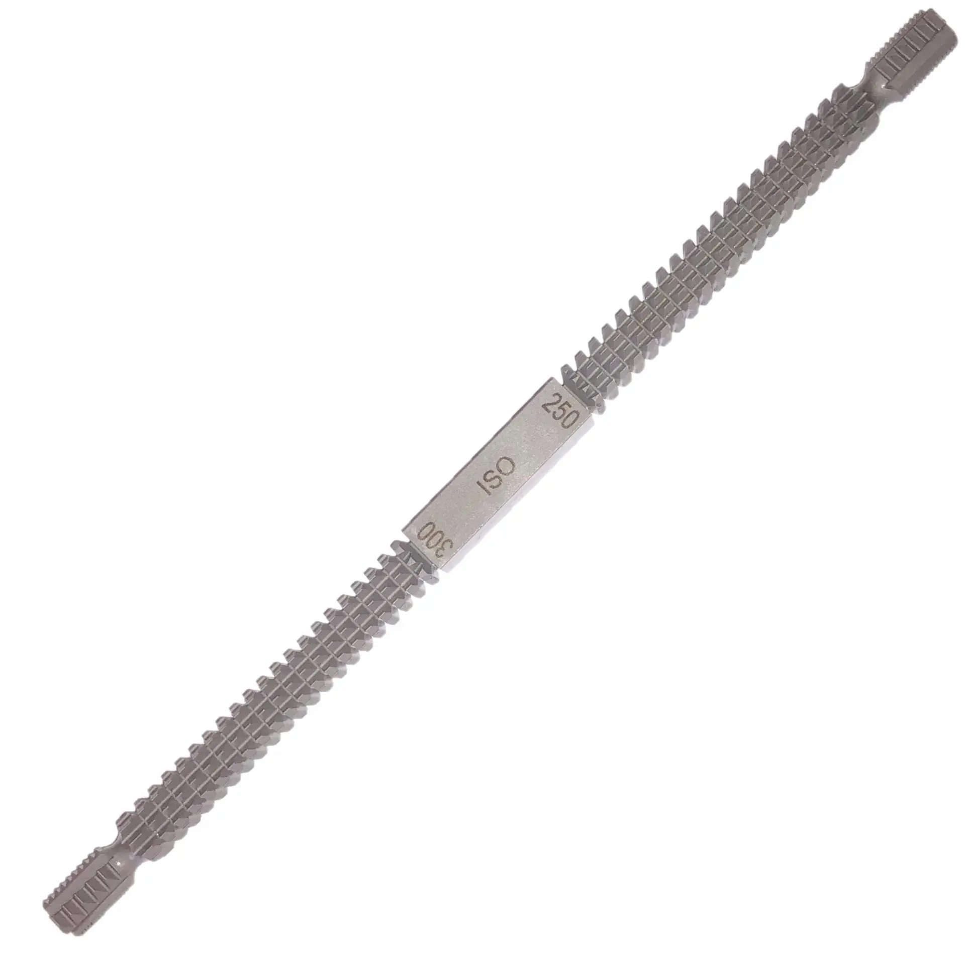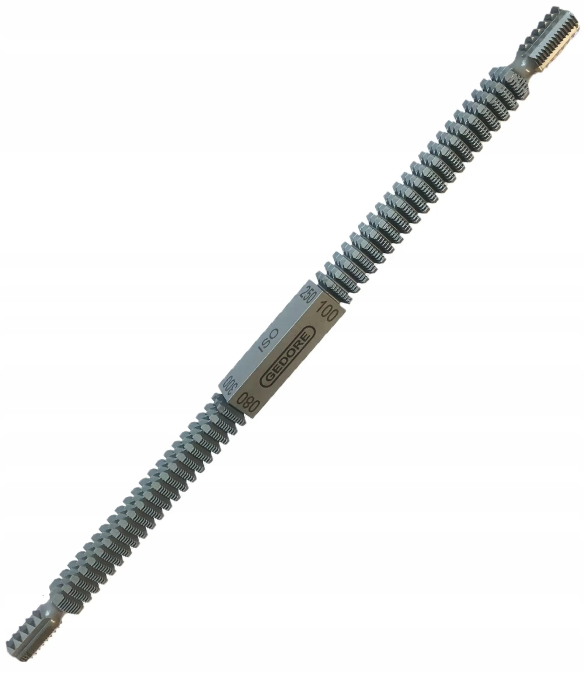 Pilník je vyrobený z odolnej chrómovanej vanadiovej ocele, ISO niklový povlak, s 8 rôznymi stúpaniami závitov [mm]: 0,8 – 1 – 1,25 – 1,5 – 1,75 – 2 – 2,5 – 3