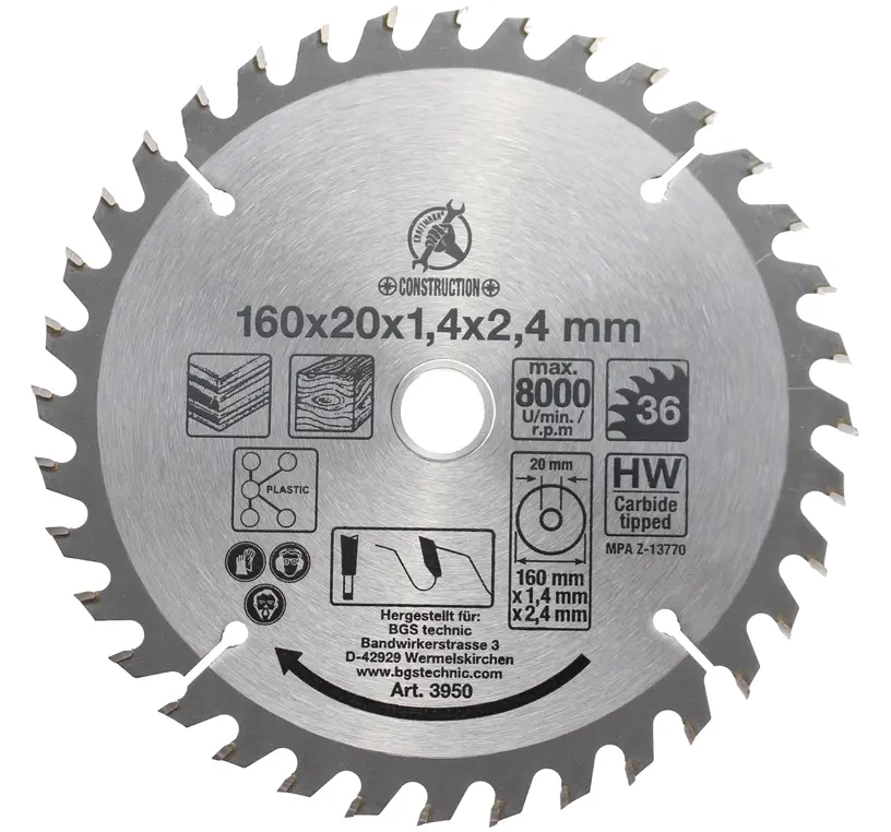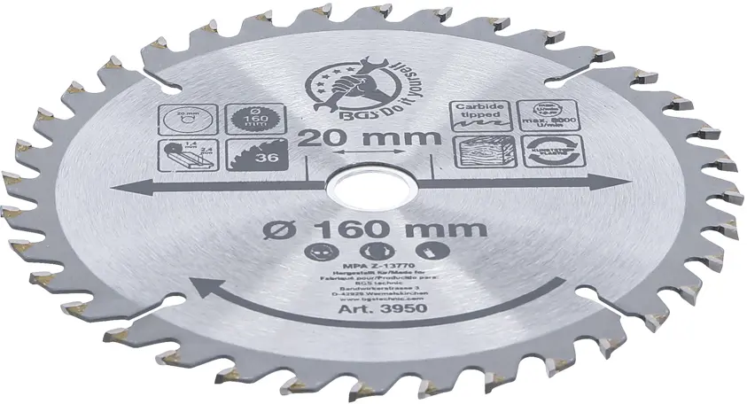 Pílový kotúč zo spekaného karbidu priemer 160 x 20 x 2,4 mm, 36 zubov (BGS103950)