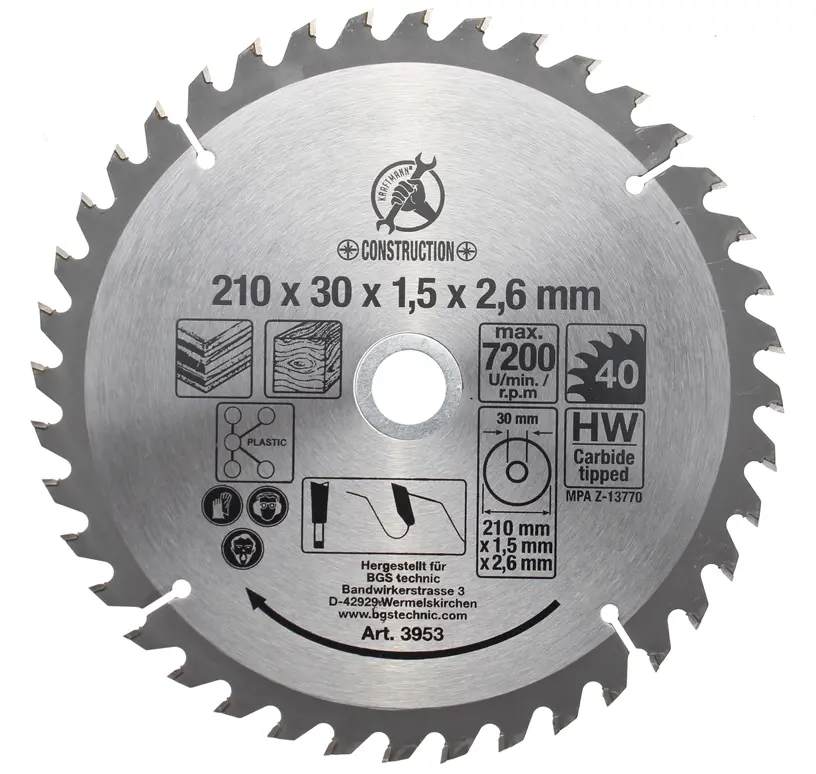 Pílový kotúč zo spekaného karbidu priemer 210 x 30 x 2,6 mm 40 zubov (BGS103953)