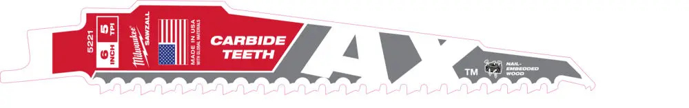 Pilové listy Milwaukee TCT AX 150 - Dĺžka pílového listu [mm]: 150 - Materiál pílového kotúča: karbid uhlíka - Rozstup zubov [TPI]: 5 - Rozstup zubov [mm]: 5 - Počet kusov v balení: 1 - Maximálny rezný výkon:- drevo s klincami [mm]: 10 ÷ 100 - Mäkké drevo [mm]: 10 ÷ 100 - plastové rúry - priemer [mm]: 10 ÷ 100 - plast [mm]: 10 ÷ 50Demolačný pílový kotúč s karbidovým hrotom Milwaukee Heavy Duty AX 150 (1 kus) Vysokokvalitné originálne príslušenstvo k priamočiarej píle Milwaukee na búracie práce, rezanie dreva vrátane klincov. Pilový kotúč AX s karbidovým hrotom bol navrhnutý tak, aby poskytoval extrémnu odolnosť a bezkonkurenčnú všestrannosť pri ťažkých, extrémnych rezoch dreva s klincami. - 2x rýchlejší: Agresívna geometria (2 zuby na TPI) umožňuje najrýchlejšie rezanie dreva s klincami a širokej škály stavebných materiálov (drevo/hřebíky/šrouby/liatina/asfaltové strešné šindle). - Odolnosť: karbidové zuby poskytujú dlhú životnosť a extrémnu odolnosť