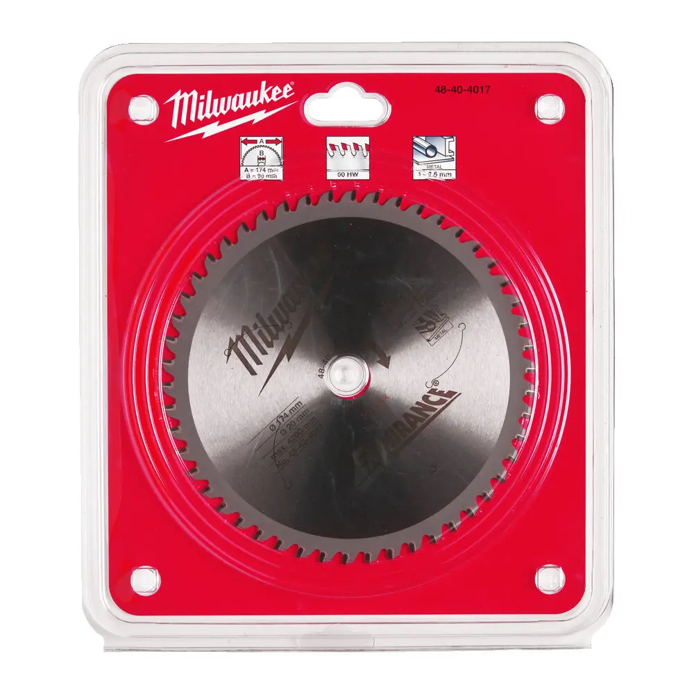 Pílový kotúč na kov Milwaukee má priemer 174 mm, otvor 20 mm a 50 zubov na presné rezanie kovových materiálov. Vhodný pre rôzne typy píl.