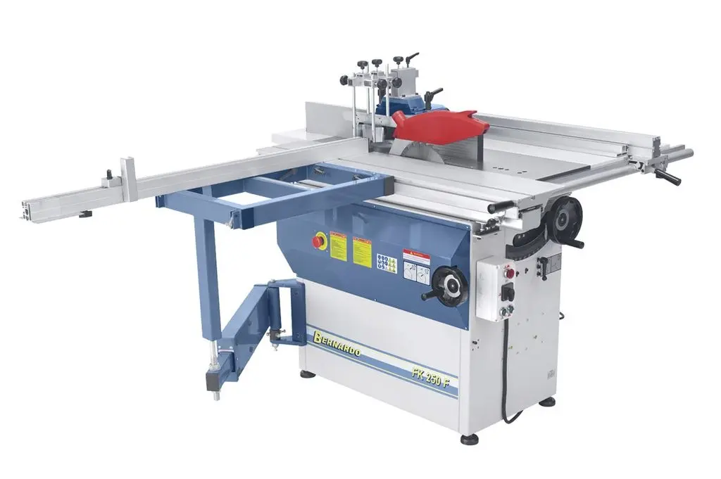 Kombinované drevoobrábacie stroje Bernardo - kombinovanáformátovacia píla s predrezom a spodná frézka je vďaka sériovo dodávanému formátovacímu stola vhodná pre náročných domácich majstrov .