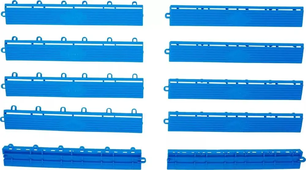 Sada deseti plastových dlaždic s rozměry 400 x 55 x 15 mm a bočním rámem umožňuje rychlou montáž díky Click-Systému, vhodná pro ohraničení různých ploch.