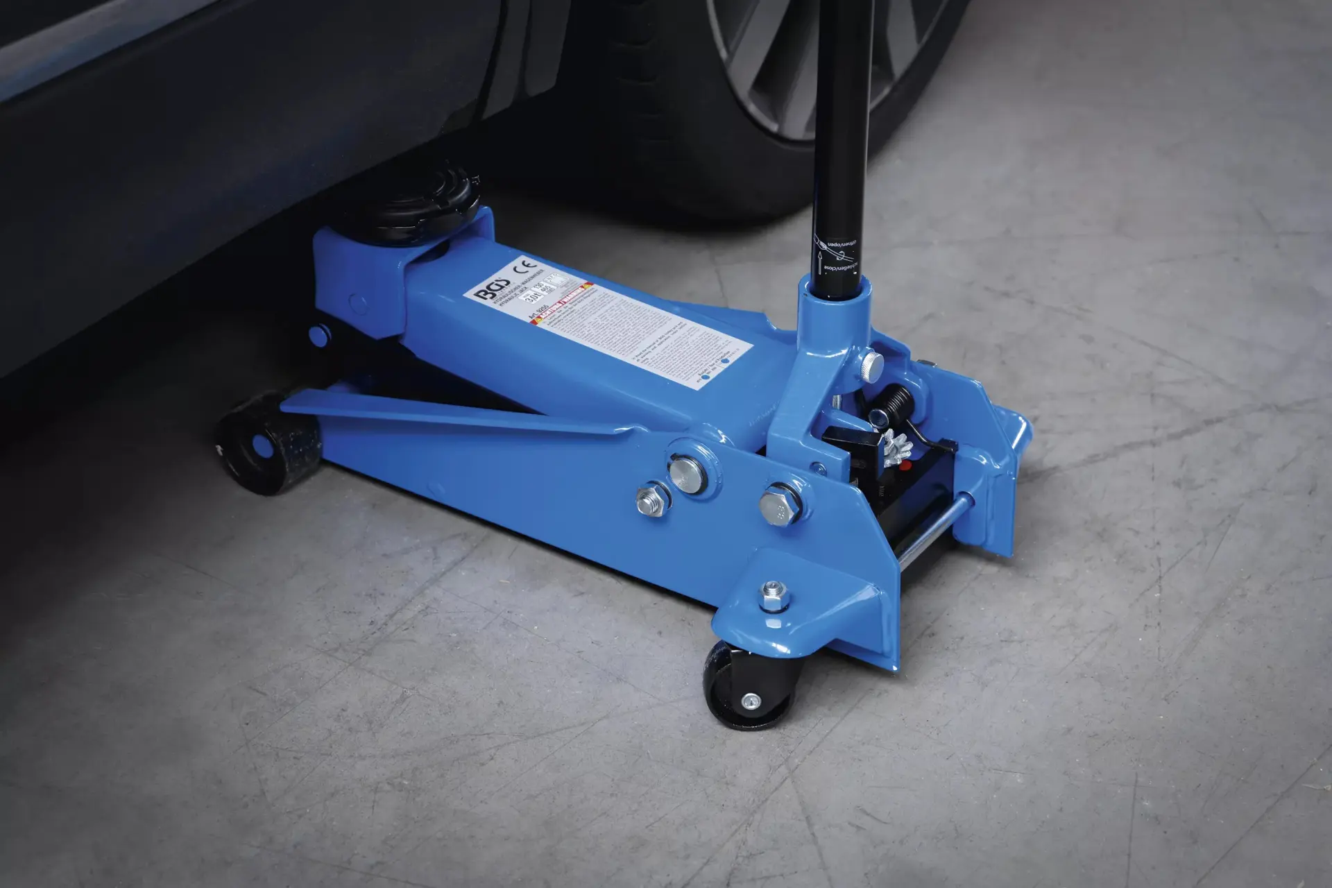 Pojízdný hydraulický zvedák BGS109255 zvládne zvednout až 3 tuny, má robustní konstrukci a snadno se ovládá díky kolečkům pro přesun. Vhodný pro práci v garáži i dílně.