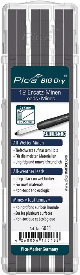 Sada tuhy pre tesárske ceruzku BIG Dry ANILINE2.0 grafit Pica