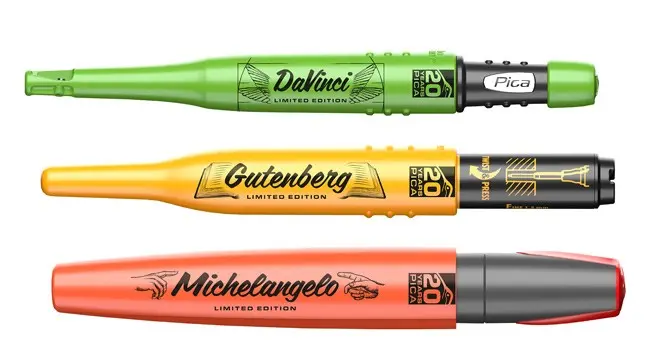 Súčasťou balenia je kompletná sada najobľúbenejších značkovačov Pica, ktoré sú prispôsobené na každodenné používanie na stavbe a v dielni