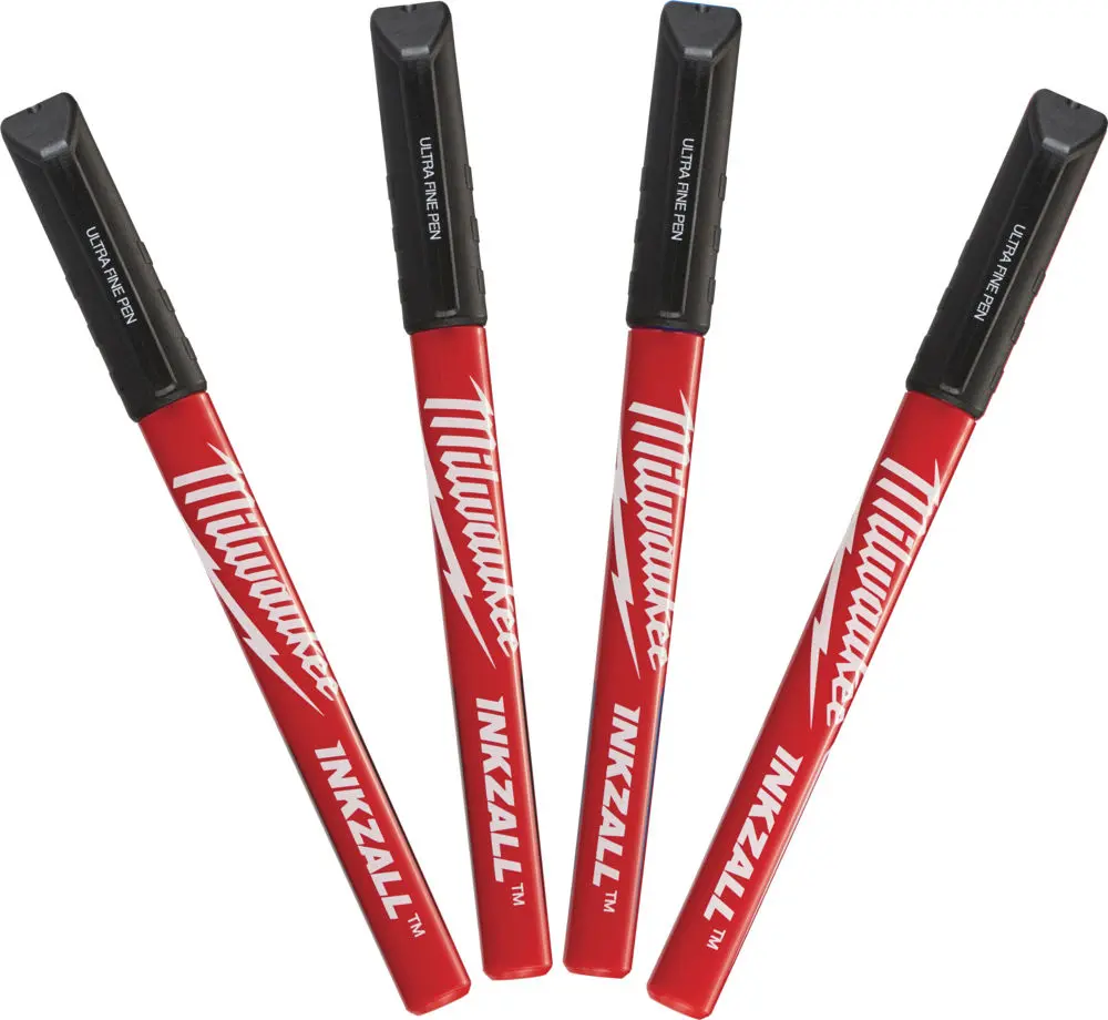 Profesionálne značkovače Milwaukee INKZALL™ s tenkým hrotom v sade 4 ks